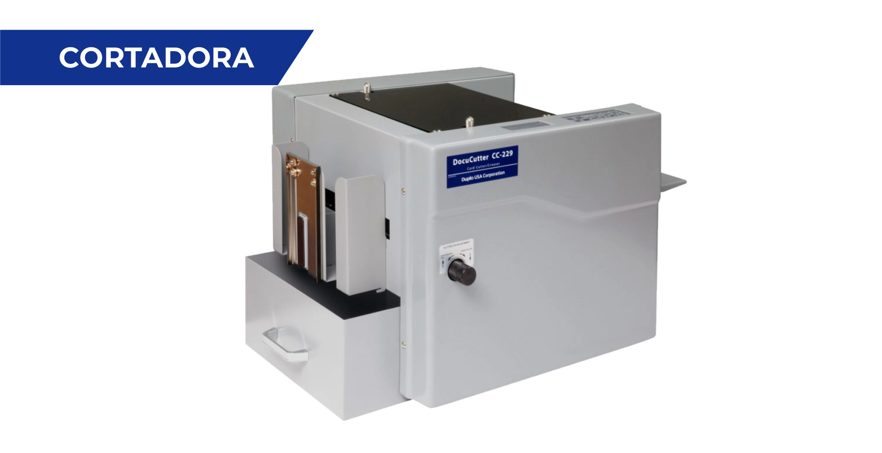 La cortadora de tarjetas CC-229 produce hasta 130 tarjetas de presentación por minuto. Ideal para pequeños volúmenes, la CC-229 maneja papel de hasta 300 g/m² y hasta 9″ x 14″. Las piezas terminadas se colocan en una bandeja de recogida y los residuos se depositan en el contenedor para facilitar el acceso. Incluye de serie un casete de corte para tarjetas de presentación y un módulo hendidor.